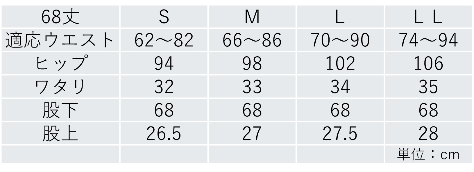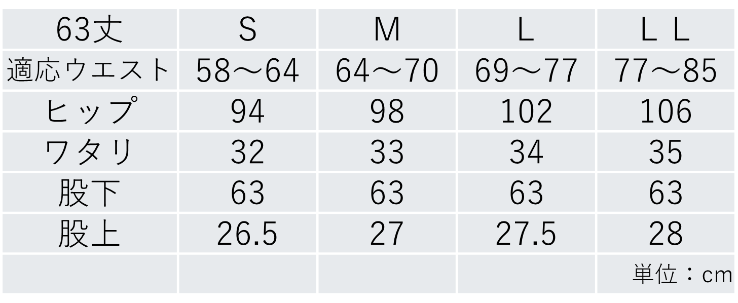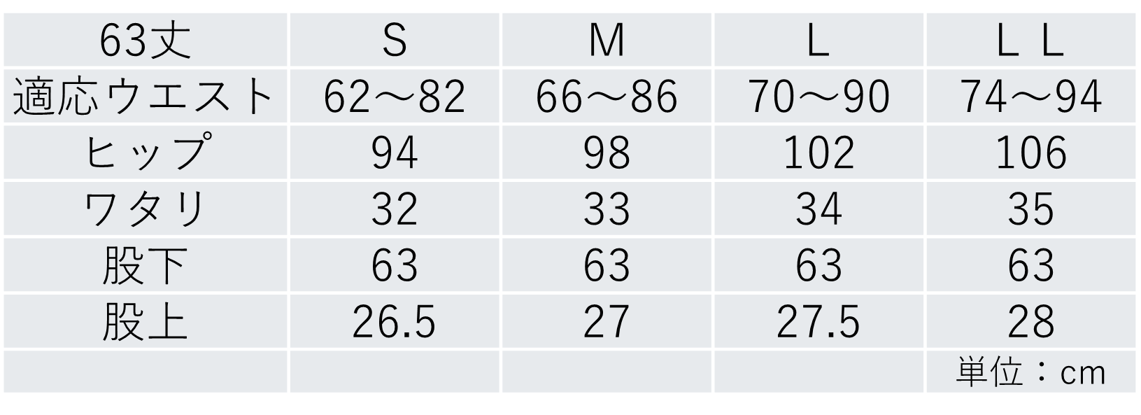 選べる股下(63cm、68cm)とサイズ満載(S-LL)で多くの方に愛用頂けます。