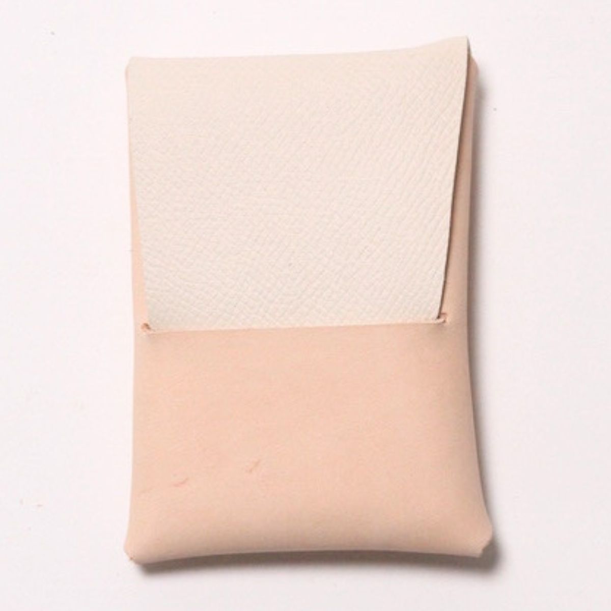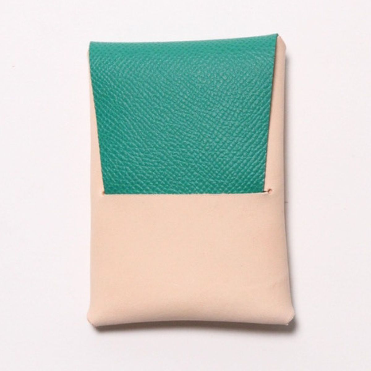 ミシン目が外に出ていないことで耐久性も持ち合わせる、革を楽しむカードケースです。