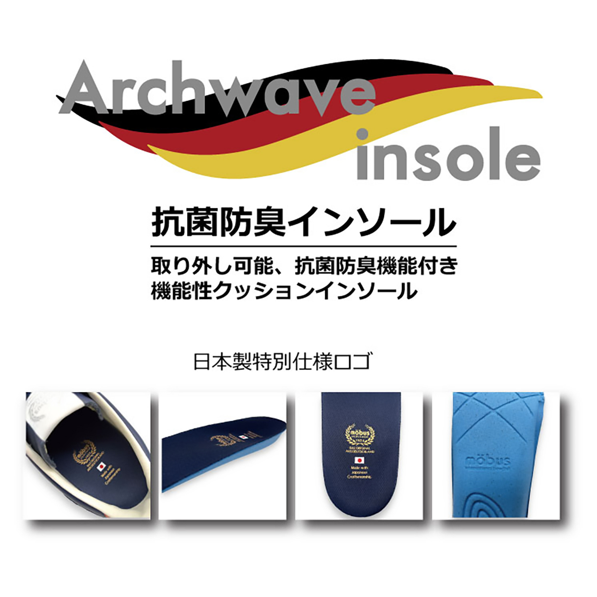 インソールは抗菌防臭、クッション性のオリジナル機能性インソールアーチウェイブを標準装備。