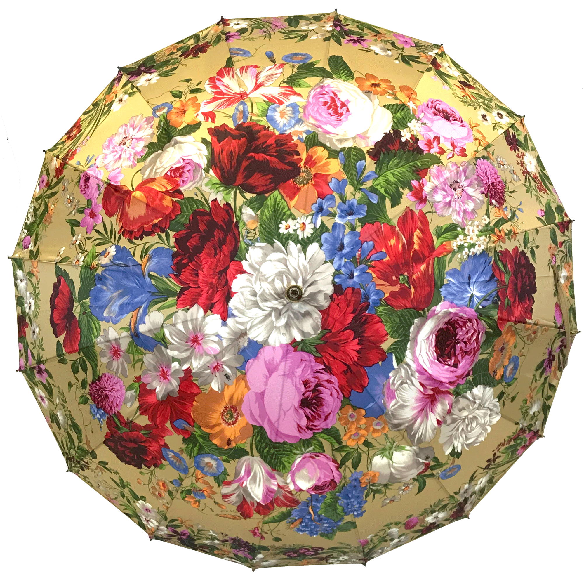 熟練の職人が一本ずつ丁寧に作った、一枚の生地の裏地に鮮やかな花がプリントされた傘。