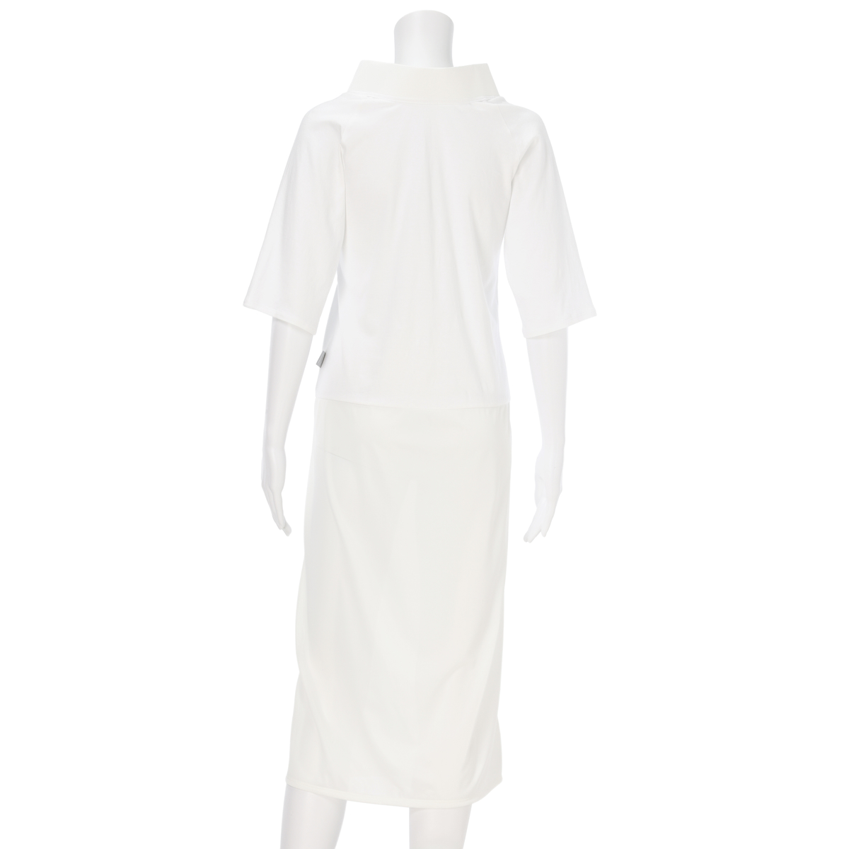 スナップボタンを付けた前開き仕様で、ヘアセットやメイクをした後での着替えもしやすい。