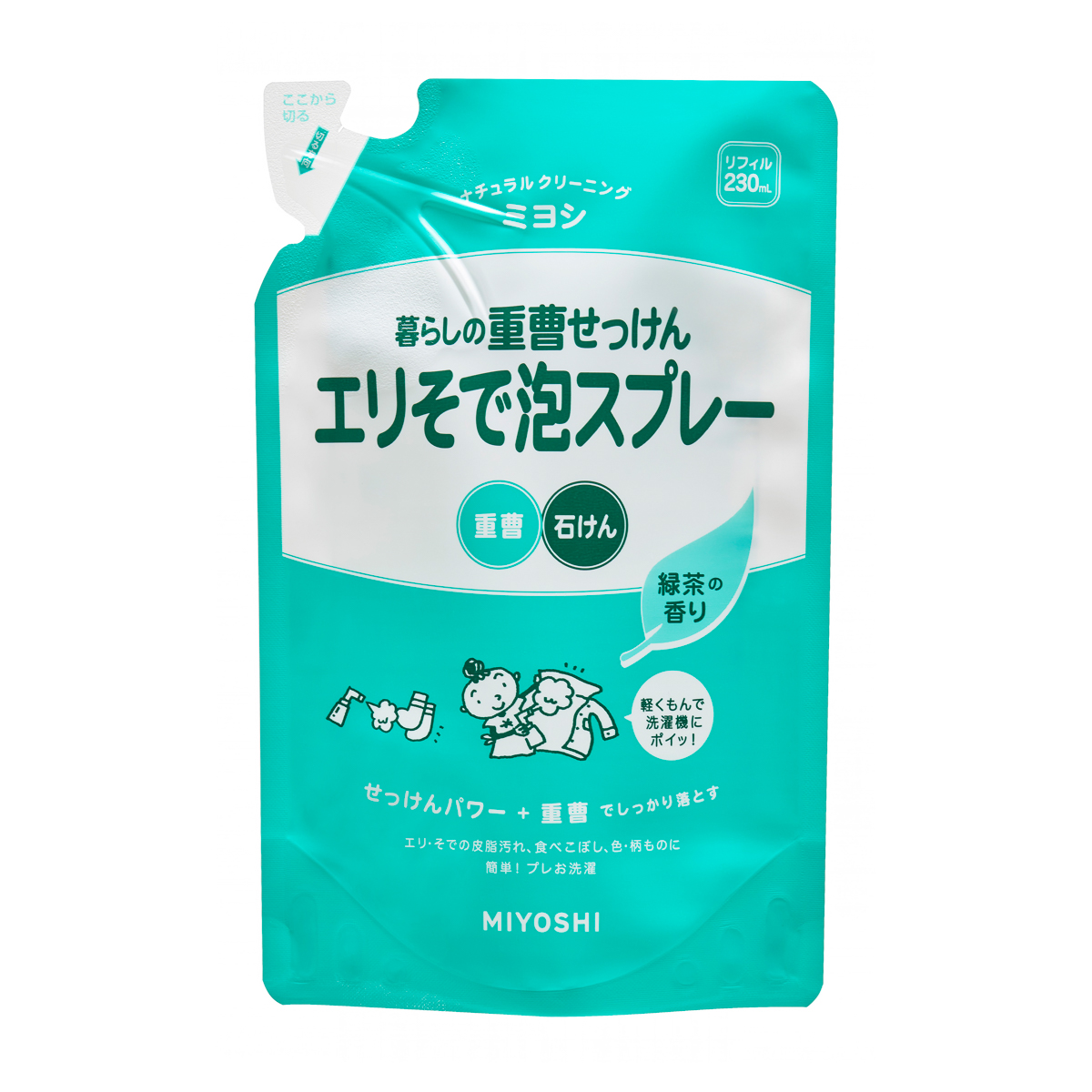 暮らしの重曹せっけんエリそで泡スプレー リフィル 緑茶の香り 230ml