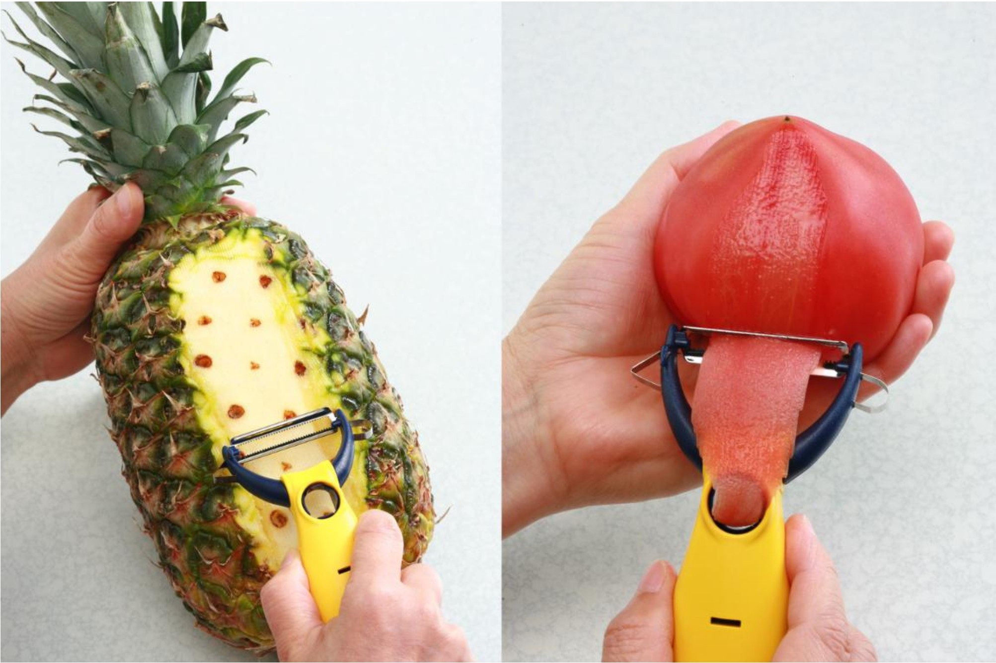◎パイナップルの厚い皮からトマトの薄い皮まで