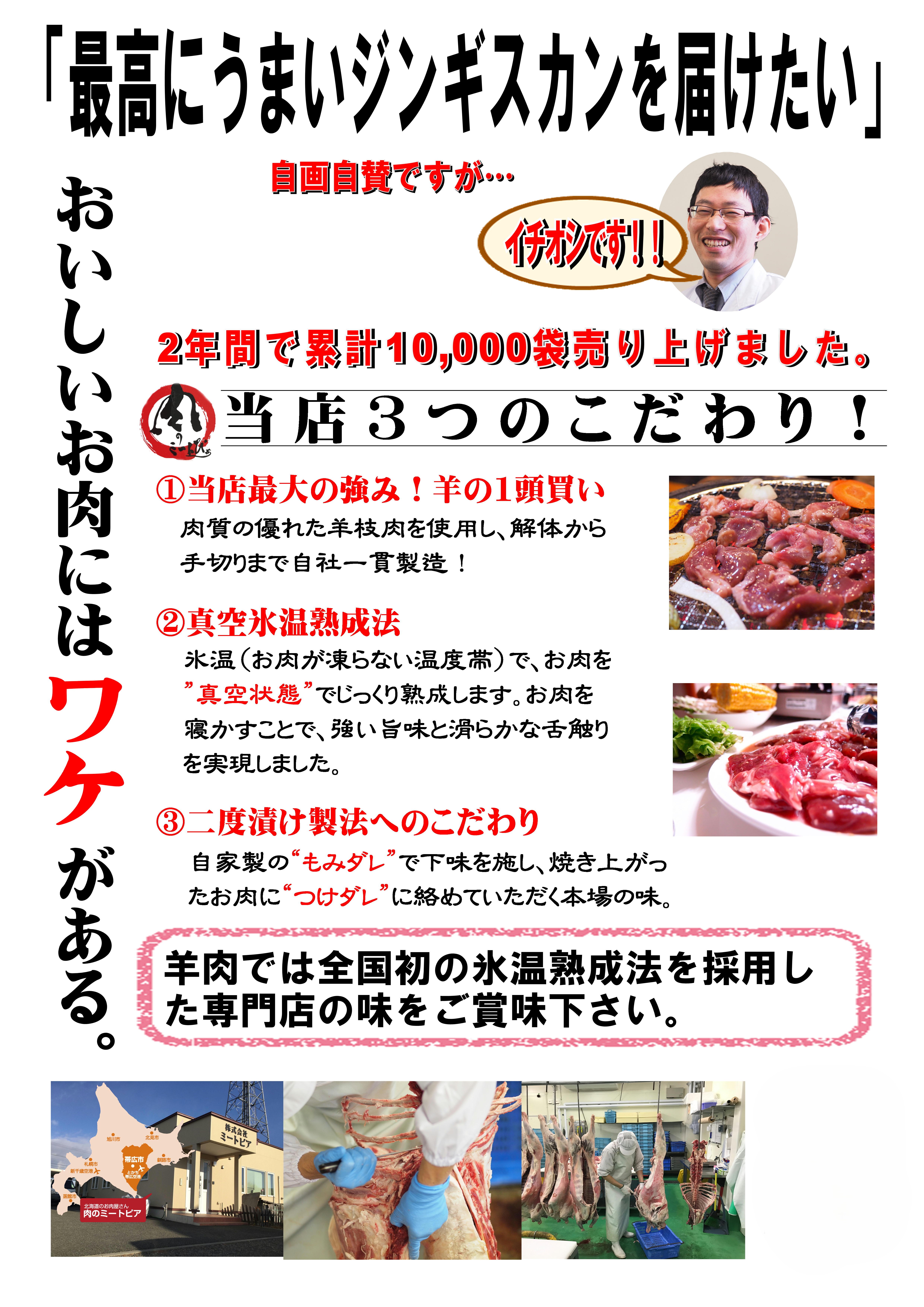 北海道内の有名店へラム肉を提供している信頼のミートピアです。