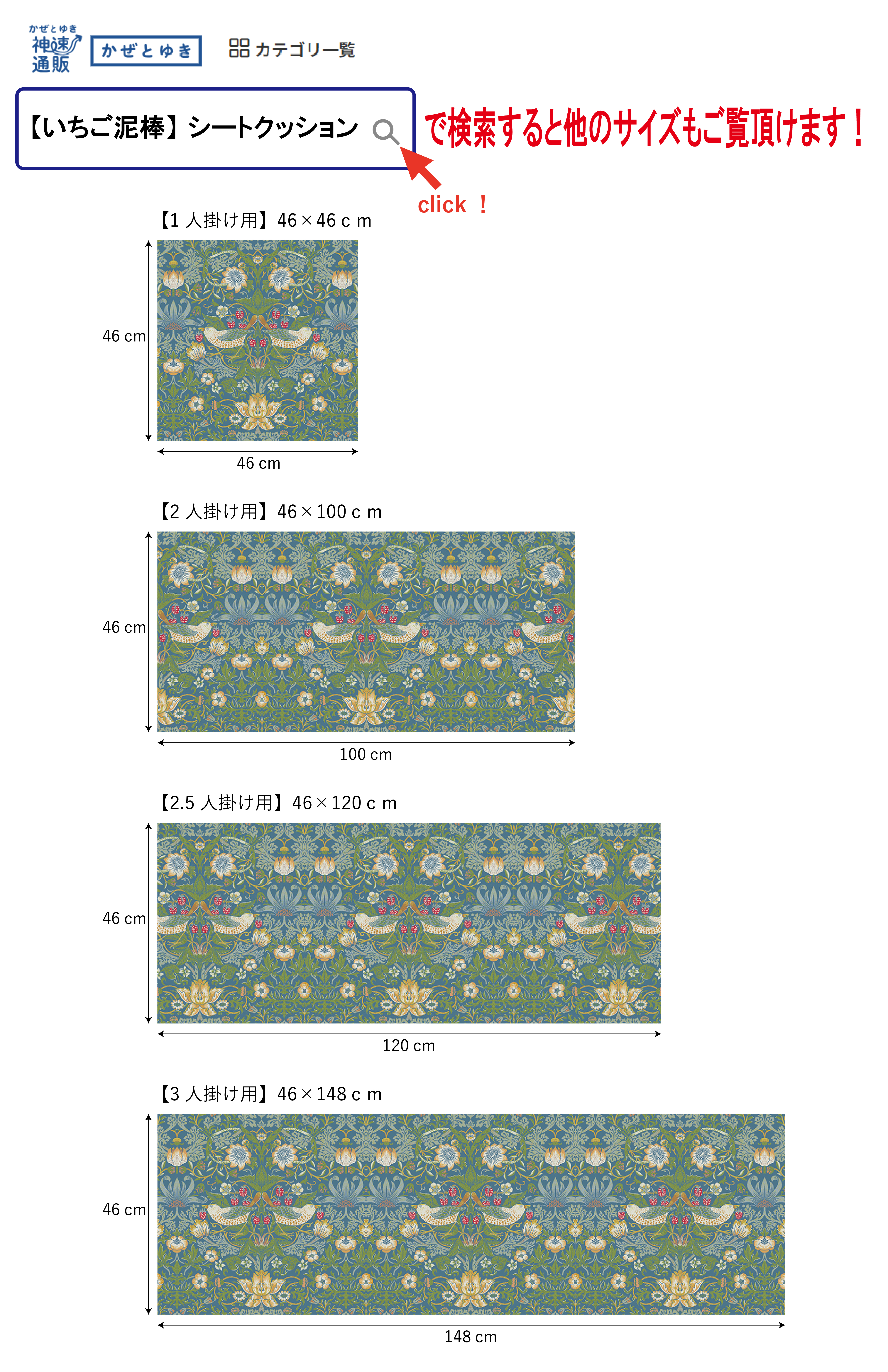 商品名:《3人掛け用》 モリスデザインスタジオ 【いちご泥棒】 シートクッション 46x148cm