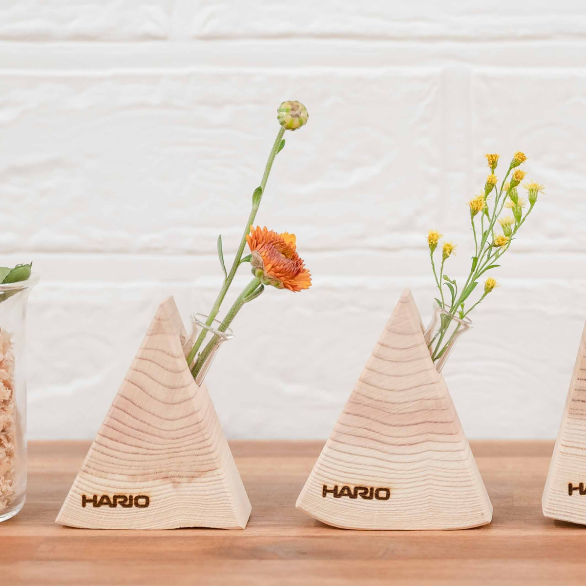 有害な重金属を含まないピュアな素材で作られた HARIO のガラスと、木目が美しい隠岐の木を組み合わせ、手に取るだけで上質であるとわかるものづくりを目指しました。